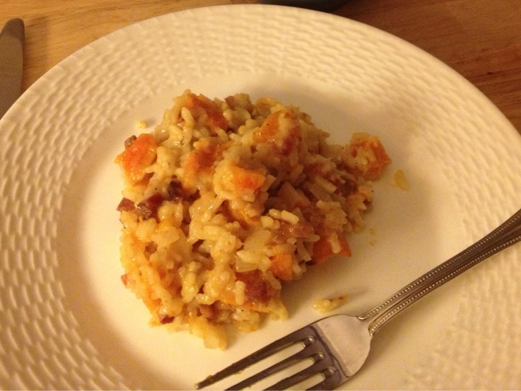 Last night The Principessa made a fabulous Butternut Squash – Bacon risotto using our own bacon and our own squash. We licked the plates clean.