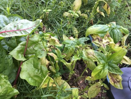 The scourge of basil growers everywhere has struck. I have planted basil plants a half dozen times this season and watched as every plant has yellowed, then turned brown and shriveled up. After noticing the latest batch (one week in!) start to turn. I turned to the interwebs and googled “basil fungus” and sure enough. Downy Mildew….and no known cure. I guess I should be glad I’m not a basil farmer.