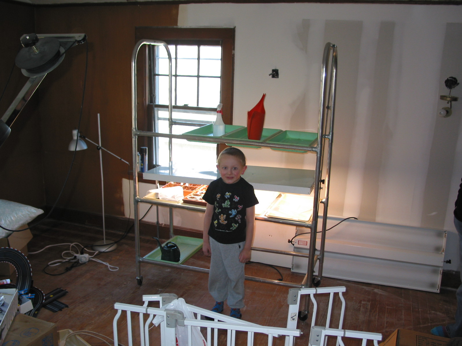 We set it up in the attic because the thing is too tall to go in the basement. So we’ve got flowers, ‘maters and some herbs going so far. And we haven’t even filled one shelf.