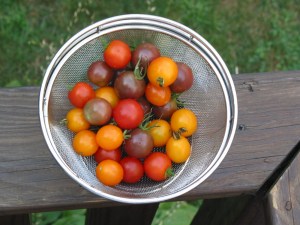 You’d think that with a title like Jerzeetomato, we’d be posting constantly as the crop started to come in. In fact we’ve been slacking off and enjoying our tomatoes. And we haven’t even gotten to The Inundation yet. But, no. We’re slackers. Here are some photos of the early crop.